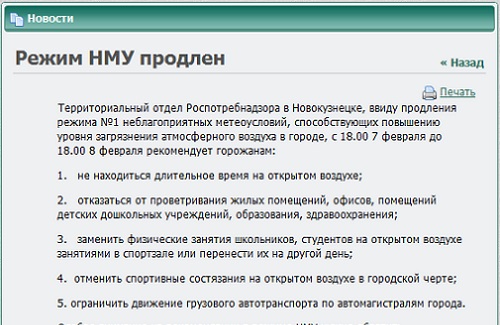 Я пересмотрел на официальном сайте администрации Новокузнецка все февральские новости, в надежде обнаружить информацию о том, что делает власть, чтобы облегчить страдания горожан в этих непростых условиях. К примеру, когда в нашем регионе наступили лютые холода, чиновники провели ряд профилактических мероприятий с целью предотвратить рост числа пожаров. Логично предположить, что и при повышении уровня загрязнения атмосферного воздуха в городе, власть должна принимать какие-нибудь профилактические меры.