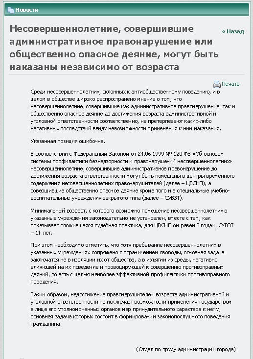 Изрядно удивила Администрация Новокузнецка, которая вчера разместила на своём официальном сайте в разделе «Новости» информацию с таким названием: «Несовершеннолетние, совершившие административное правонарушение или общественно опасное деяние, могут быть наказаны независимо от возраста». Мне всегда казалось, что подобные тексты – епархия городской Комиссии по делам несовершеннолетних. Однако подпись под текстом гласила: «Отдел по труду администрации города». Или расходы на профилактику негативного девиантного (отклоняющегося от принятых норм) поведения юных новокузнечан тоже попали под нож оптимизации городского бюджета? Вообще, к чему вдруг такая страшилка в разделе «Новости», предполагающем наличие информационного повода?