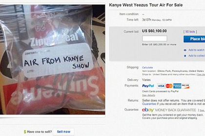 Цена за пакет воздуха с концерта рэпера Канье Уэста на аукционе eBay достигла 60 тысяч долларов, пишет The Independent.