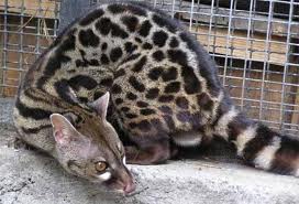В то же время сотрудники зоопарка не без интереса наблюдают за пятнистым котом генетта с пушистым хвостом и вытянутой мордочкой. Двухлетний самец в настоящее время в вольере содержится один, и в планах руководства зоопарка приобрести для него подружку.