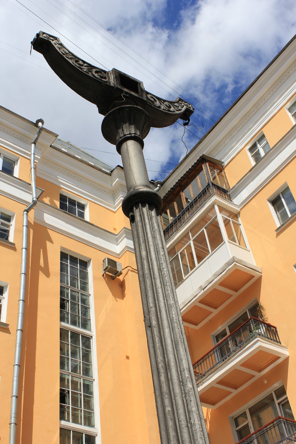 Живущие в доме №25 на проспекте Металлургов, идущей строго с севера на юг, – первого в городе, где был лифт, и детское счастье просто не имело границ! – своих «лягушек» на помойку не выкидывают, но и привести их в порядок ни времени, ни денег всё никак не находится. Во дворе этого дома сохранились и первозданный фонарь, правда, ничего не освещающий, и разбитая чашка дворового фонтана, которая уже многие десятилетия наполняется только дождём и снегом.