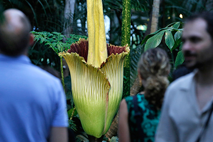 Растение также называют «трупным цветком» за специфический аромат — его сравнивают с запахом разлагающегося тела, протухшей рыбы или яиц. Аморфофаллус титанический находится в парке с августа 2008 года. Его цветение началось днем 26 июля и продлится всего несколько дней.