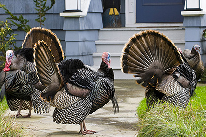 Власти калифорнийского города Дейвис приняли решение развернуть борьбу с дикими индюками, сообщает агентство AP. Агрессивные птицы обосновались на улицах несколько лет назад. Они нападают на прохожих, мешают проезду автомобилей и пачкают пометом постройки.