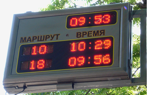 Информация на табло загружается через флешку, помимо текстовых сообщений здесь будут показываться дата, время и температура.