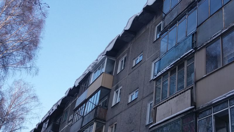 Проживаю в доме №61 по улице Циолковского. С крыши нашего дома свисают ужасающие навесы снега и наледи, более месяца не чищены козырьки подъездов, ходить около дома страшно и становится очень опасным.