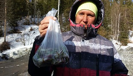 Началась массовая продажа первого весеннего дикороса. Колба разлетается на «ура». Продавцы, а их десятки, традиционно торгуют прямо на обочине близ Шерегеша.