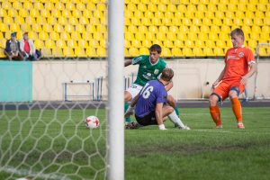 ФК «Новокузнецк» - «Рассвет-Реставрация» - 3:1 (1:0) 20 августа. Новокузнецк. Стадион «Металлург». 1000 зрителей. Судья: К.Наприенко (Новосибирск). Голы: Щербаков, 8 (1:0). Горюнов, 70 (1:1). Щербаков, 71 (2:1). Щербаков, 90 (3:1). ФК «Новокузнецк»: Шутиков, Грохин, Горелов (Андреев, 89), Котов, Клонов, Щербаков (Пешков, 90+1), Марков, Куликов, Лысков (Ращук, 61), Ускоев (Бибик, 69. Волохович, 84), Агеев. «Рассвет-Реставрация»: Елисеев, Оганичев, Ларионов, Марченко, Иванин, Фальковский, Зуев, Гурулев, Козлов, Ивахов (Дунаевский, 75), Горюнов (Мисютин, 74). Предупреждения: Горелов, 55 (грубя игра). Ращук, 82 (срыв перспективной атаки). Марков, 85. Волохович, 88 (оба – грубая игра) – Ларионов, 45. Мисютин, 89 (оба – неспортивное поведение). Оганичев, 90 (срыв перспективной атаки). Выиграв у прошлогоднего победителя чемпионата России в высшей лиги зоны "Сибирь" третьего дивизиона, ФК "Новокузнецк"за три тура до конца первенства обеспечил себе первое место. Хет - трик сделал полузащитник Евгений Щербаков, пришедший из "Распадской". Напомним, что он отличился в предыдущей встрече с красноярским "Енисеем - М". Начало игры прошло в очень острой борьбе. Команды играли быстро и плотно. Агеев , войдя в штрафную справа, пробил мимо дальнего угла, не замечая открывавшегося Горелова. После подачи углового Щербаков,выиграв воздух, пробил головой, мяч ударился в поле, найдя одну из кочек одного из лучших некогда травяных полей в Сибири, и обманул - увернулся от рук - вратаря. Горелов добрался до вратарской, кипер кулаками отбил мяч, на который накатил Агеев, но вновь не попал в дальний угол. Между тем, гости вывели своего нападающего один на один с Шутиковым,но Михаил отвел мяч в сторону. Постепенно "Рассвет" перевел игру на нашу половину поля. ФК "Новокузнецк"принялся играть на удержание счена. У нас в середине поля царила какая - то бестолочь, во всяком случае удержать мяч мы не могли.Можно вспомнить разве что тонкий пас Ускоева , выведшего Агеева на вратаря, но на этот раз что делать с мячом капитан не придумал. Начало второго тайма ни замен,ни перемены игры не принесло. Наши продолжали удерживать счет. Гости давили, разминая Шутикова навесами. Но вдруг Горюнов пробил в ближний угол и ... Шутиков пропустил самым нелепым образом. И правильно сделал: новокузнечанам пришлось зашевелиться. Горелов, лучший в это время в нашем составе, сбросил мяч на Щербакова, и новичок команды несильно, но тосно послал его в угол ворот - 2:1. И игра снова замерла на нулевой отметке. Под занавес встречи, принесшей нашей команде победу в первом из турниров, в которых мы участвуем в этом году, Щербаков виртуозным ударом со штрафного через стенку немного скрасил не самые яркие впечатления от матча. В следующее воскресенье , 27 августа, на стадионе "Металлург" состоится финальная игра Кубка Кузбасса между ФК "Новокузнецк" и СДЮСШОР. Андрей Краевский NK-TV.COM
