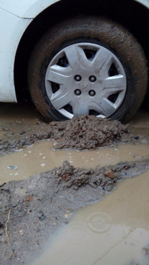 В результате люди не могут выбраться из своих дворов и публикуют фотографии застрявших в грязи автомобилей.