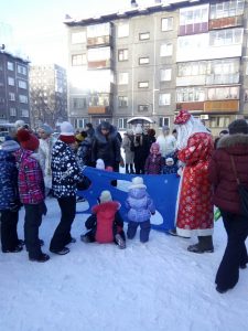 Ровно полвека назад в этом микрорайоне новокузнечане справляли свои новоселья. Поэтому одновременно с празднованием нового года жители близлежащих домов отметили юбилей своего двора. Праздник, организованный управляющими компаниями при поддержке местного СТОСа собрал малышей возле новогодней елки, а жителей старшего поколения за праздничным столом общими стараниями накрытым во дворе. Легкий морозец не стал помехой ни детскому веселью, ни воспоминаниям старожилов проживших в этих домах 50 лет. Кажется, еще вчера все вместе высаживали здесь тоненькие веточки саженцев тополей, а сейчас деревья уже переросли дома тех, кто их здесь высаживал. Кстати придомовая территория у дома пр.Дружбы, 54 в 2017 году благодаря стараниям его жителей занял по Центральному району 3 место в конкурсе на лучший двор.