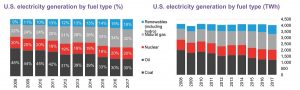 Действительно, доля угля в производстве американского электричества снижается год от года. Это хорошо видно на этом графике от Bloomberg New Energy Finance: