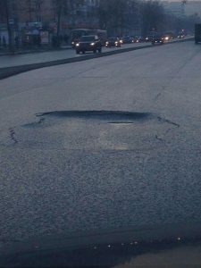 «Можно машину повредить, если ехать на полной скорости. Яма появилась у пешеходного перехода по светофору», — сообщил читатель в Вайбере.
