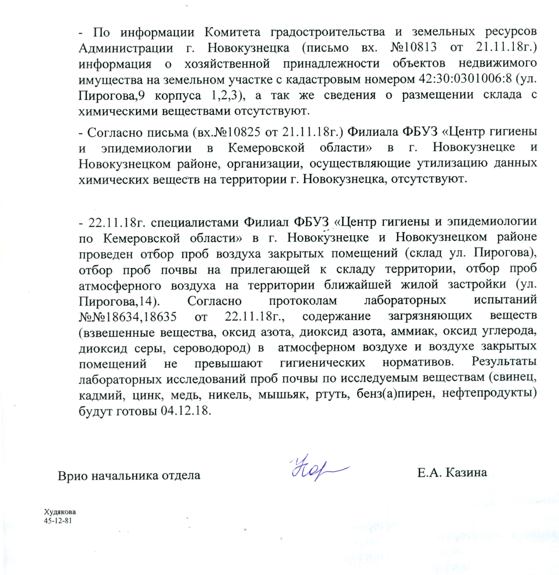 Из ответа Роспотребнадзора следует, что с данным складом и его химическим содержимым не так все просто. Во-первых, в Комитете градостроительства и земельных ресурсов Администрации г. Новокузнецка информация о хозяйственной принадлежности объектов недвижимого имущества на земельном участке с кадастровым номером 42:30:0301006:8 и сведения о размещении склада с химическими веществами отсутствуют. На место, похоже, никто не выезжал, потому что в этом кирпичном здании с противоположной химическому складу стороны за закрытыми дверями находится какое-то оборудование. Сотрудники предприятий, работающих по соседству, уверены, что там трансформаторная подстанция. Если там электрическое оборудование, то, значит, хозяин таки есть!