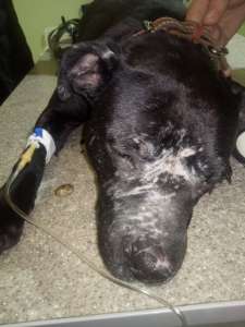Вся простывшая и ободранная, она попала на передержку. Состояние у «стаффочки» тяжёлое – цистит, отит, насморк, сточенные зубы и беременность. Но всё это поправимо. По возрасту она ещё не старая. Очень ласковая, любит людей, ладит с другими животными. Заглядывает всем в глаза. А при слове «зайка» явно оживляется и радуется, виляя хвостом. Помогите собрать собаке на лечение – отправьте любую посильную сумму с пометкой «для Зайки» из темы https://vk.com/public.php.cot.i.pesnk?w=wall-33311077_784977.