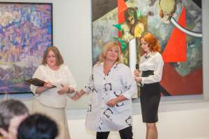 «Горизонты» открывались сразу у входа в Художественный музей: здешняя экспозиция живописи, скульптуры и декоративно-прикладного искусства начинается прямо в фойе и продолжается в двух музейных залах. Там прошла официальная часть юбилейного мероприятия,