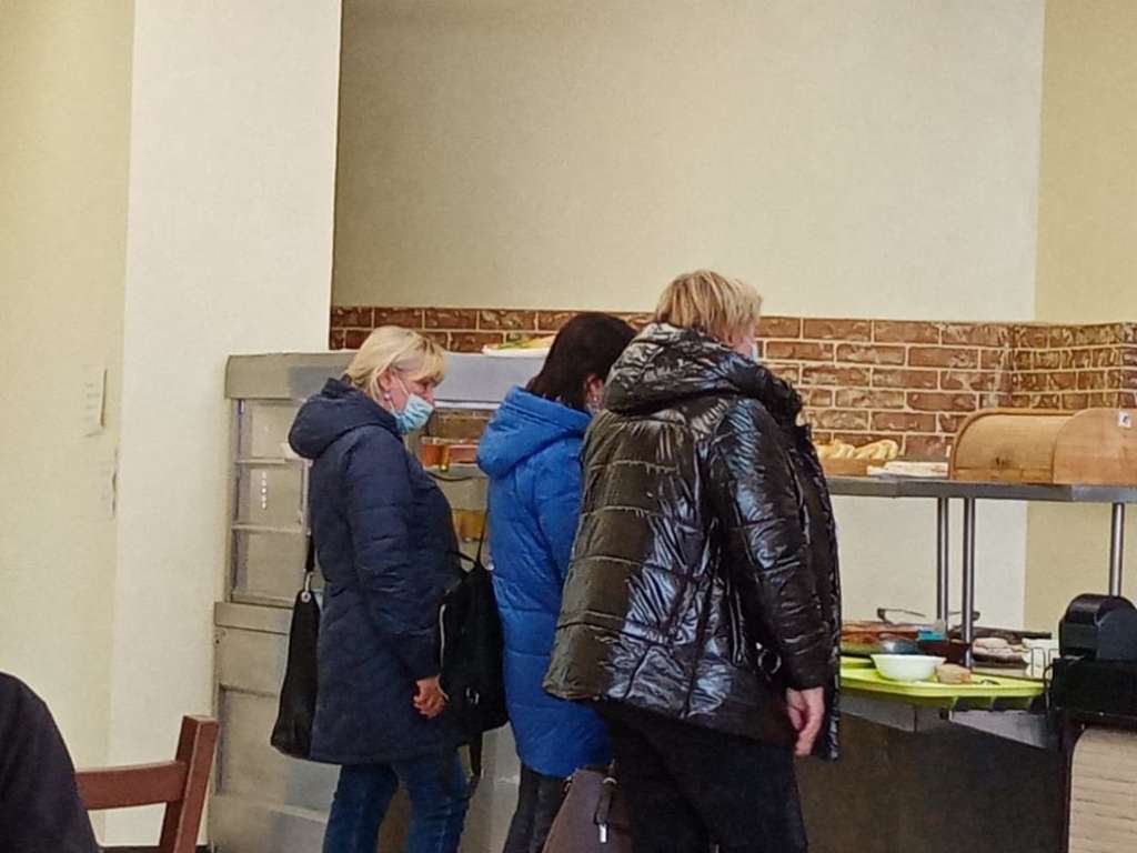 Возле стойки с блюдами работница столовой настоятельно просила посетителей надеть защитные маски. В данном случае эта просьба логична и уместна: даже если здоровый человек чихнет в сторону готовых блюд, капли его слюны и соплей – это, отнюдь, не та приправа, которая предполагается в соответствии с рецептурой. Но… Все посетители столовой стояли в масках и верхней одежде, потому что гардероба или вешалки для пальто и курток нет. Хорошая хозяйка на кухню никого в пальто не пустит. Почему в заведении общепита можно подходить на раздачу в верхней одежде? Разве это не является элементарным правилом санитарной безопасности?