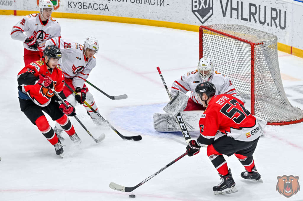 Сегодня наша команда провела первый матч в сезоне в Новокузнецке. «Медведи» в поединке с одним из лидеров конференции уже на 3 минуте получили большинство, но использовать численное преимущество не получилось. «Авто», в стартовые минуты не имевшее игровой инициативы, вскоре во время своего большинства обозначило потенциал, опасно действуя в зоне атаки. В дальнейшем до перерыва гости создали больше число моментов, однако отличиться уральцам не удалось — Семён Шарабарин отыграл очень качественно, сделав 16 сэйвов.