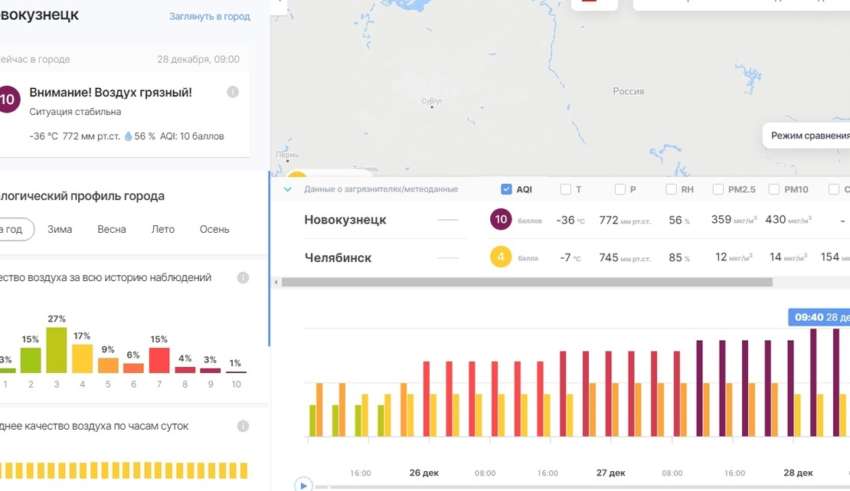 Уровень загрязнения воздуха в Новокузнецке оценили в 10 баллов из 10. Погода в Кузбассе способствует накоплению вредных примесей — стоит сильный мороз и нет ветра. Но самая неблагополучная ситуация в Новокузнецке.