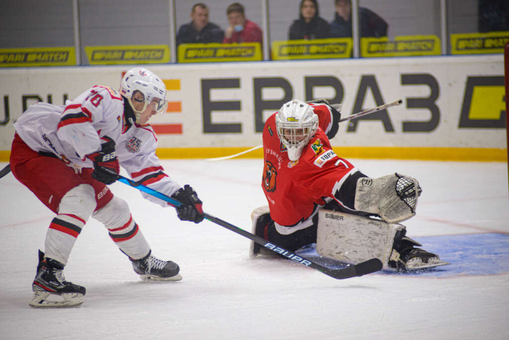 Сегодня наша команда провела второй домашний матч в сезоне. Соперник в стартовом периоде владел преимуществом, поиграл в большинстве, в том числе 65 секунд 5 на 3, однако Артём Путулян спокойно справился со всеми атаками «Авто» и несколько раз выручил «Медведей».