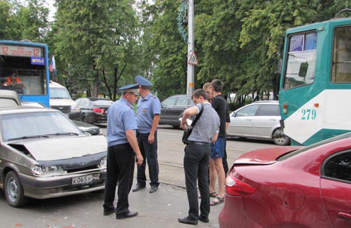 Отечественное авто, что называется, догнало иномарку. Как результат — разбитые фары, помятый капот, поцарапанный бампер и плохое настроение сотен новокузнечан. Из-за ДТП движение в направлении комсомольской площадки оказалось практически полностью парализовано. Стояли трамваи и троллейбусы, с трудом объезжая препятствие по встречке, просачивались легковые авто.
