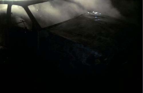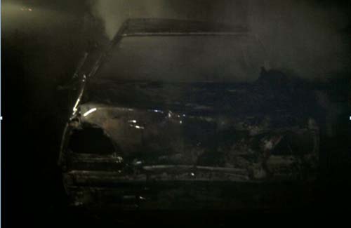 Мужчина был доставлен в больницу, а, судя по фото, его автомобиль выгорел полностью.