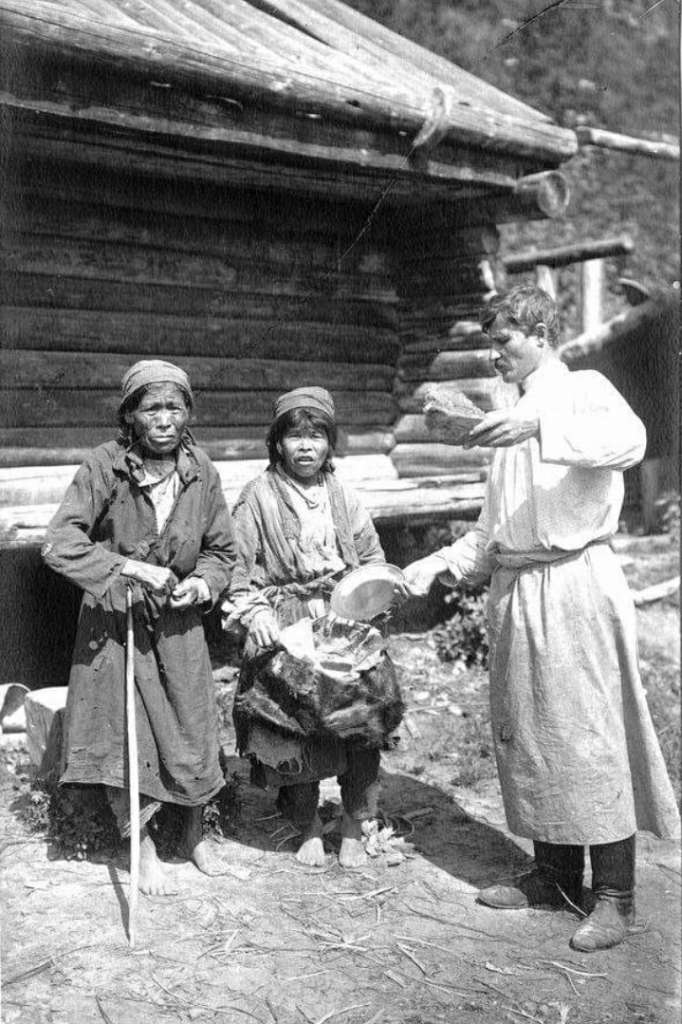 Край был малонаселённый, беднейший – ни живности, ни огородов не видать. На ивановских фотографиях сразу выделяются даже рабочие из партии – у них хорошие рубахи, сапоги, картузы. Они подкармливали местных измождённых нищенок.