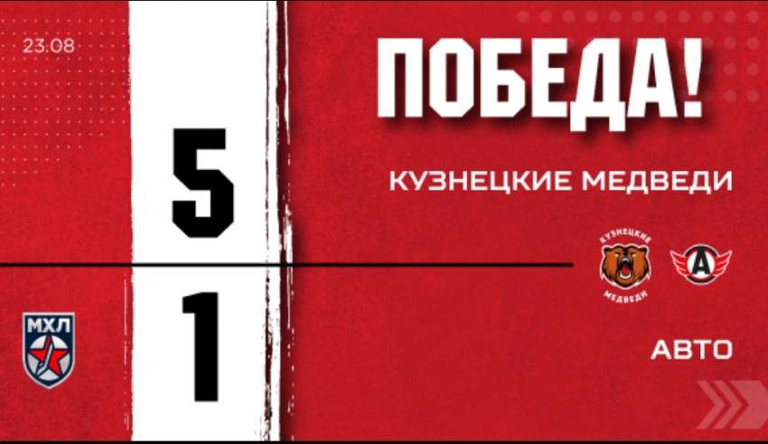 Новокузнечане открыли счёт на 35 минуте, а в заключительном периоде отличились ещё 4 раза. Причём на последней минуте, с разницей в 9 секунд, «Медведи» забили гол в пустые ворота и в ворота, когда в них уже вернулся голкипер «Авто».