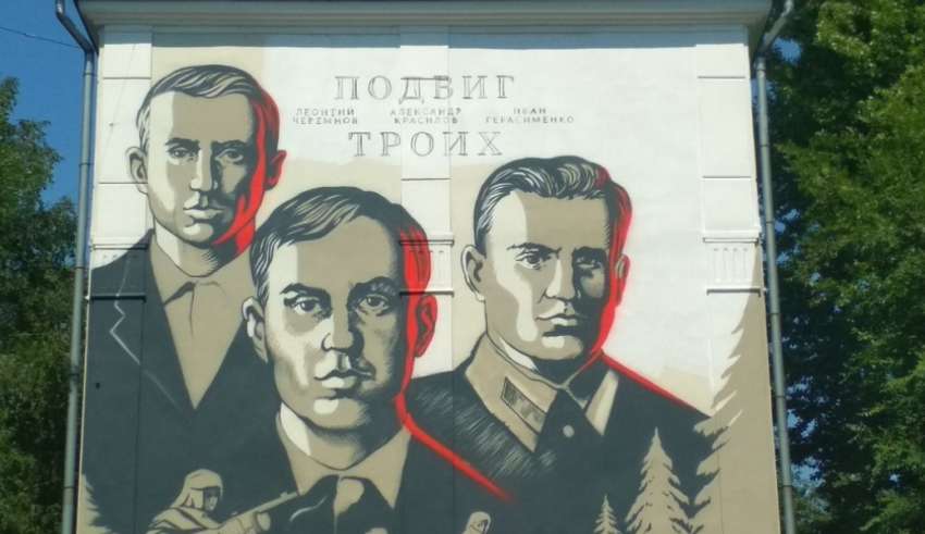 На нашем бульваре Героев, у Вечного огня, есть чеканка с говорящим названием «Подвиг», посвящённая трём товарищам. В 2015 году им были присвоены звания «Почётный гражданин города Новокузнецка». А три года назад торцевую сторону дома №13 по улице Кирова украсил граффити-портрет «Подвиг троих: Александр Красилов, Леонтий Черемнов и Иван Герасименко».
