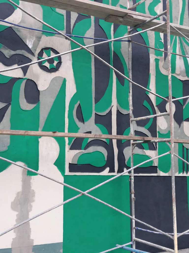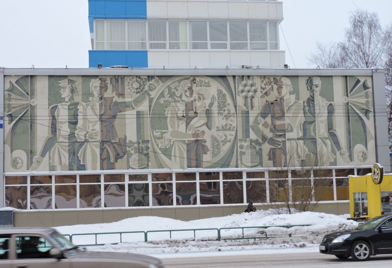 Намного всё печальнее с панно на фасаде дома Кузнецкстроевский, 28. Какой-то неумный чиновник много лет назад дал разрешение переоборудовать квартиру на первом этаже в нежилое помещение с отдельным входом. В результате пробивания двери в наружной стене потрескались межпанельные швы под панно. Утепление помещений изнутри не помогает. В квартире над этим нежилым помещением в сильные морозы шов промерзает насквозь. Управляющая компания, которая обслуживает дом, готова утеплить межпанельные швы и даже в своё время готовила два сметных расчёта на выполнение работ с лесов и с вышки. Всё упёрлось в панно: как обеспечить доступ к швам и как его потом восстановить. На выездном совещании в 2017 году, когда чиновники, архитекторы, художники и потенциальный спонсор встретились на адресе, прозвучало лишь одно предложение: признать дом объектом культурного наследия, напечатать открыток с его изображением на вырученные деньги отремонтировать панно…