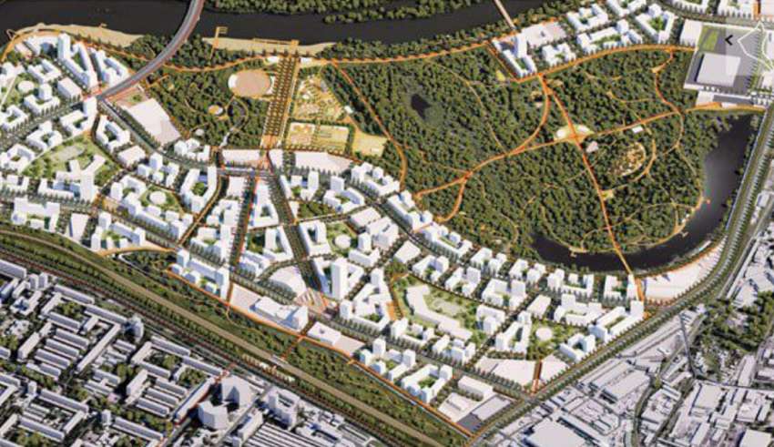 В прямом эфире 10 Канала чиновник подтвердил все ранее опубликованные планы. На территории в 363 Га разместят около 40 тысяч человек. Дома будут преимущественно в 4-8 этажей с несколькими 16-этажными «свечками». Ближе к воде разместят таунхаусы.