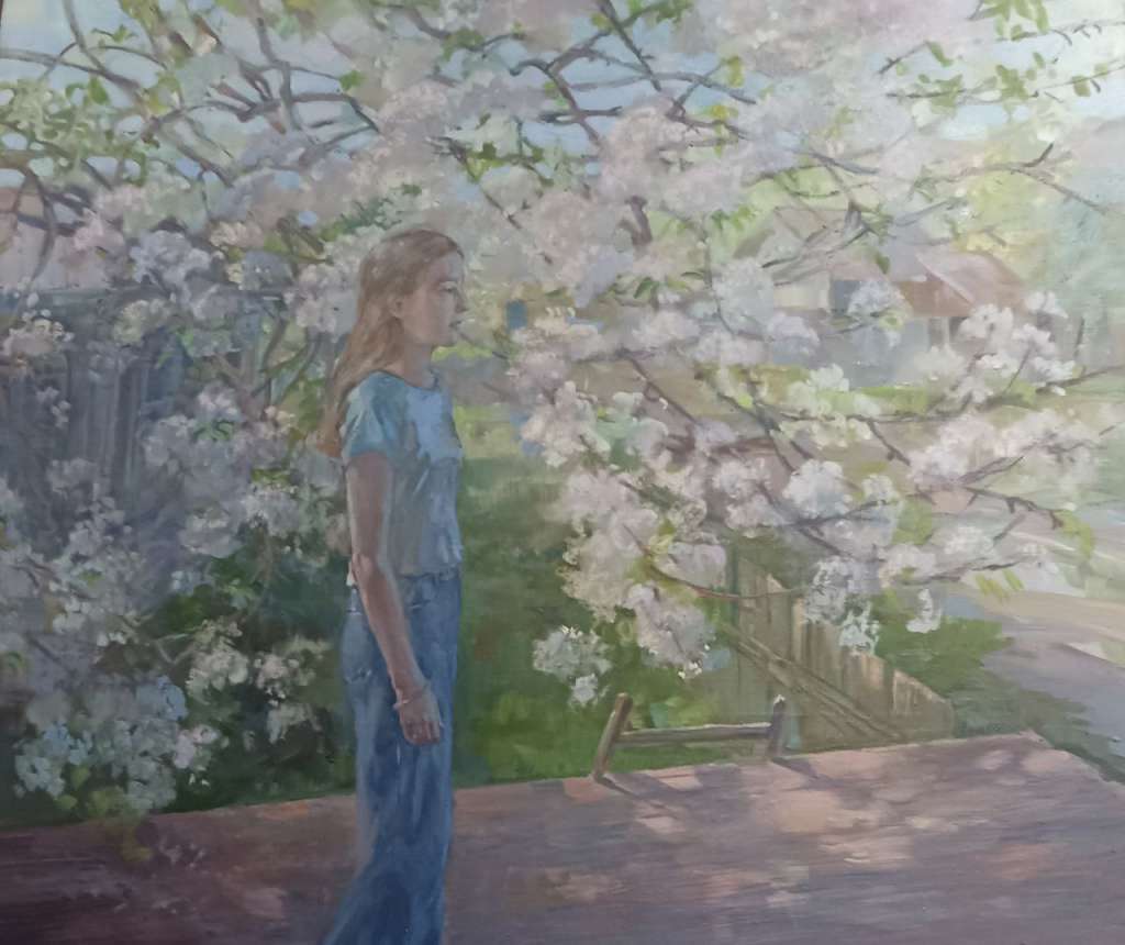 Представьте, что вы находитесь в весеннем саду. Просто зажмурьте глаза. А теперь «разожмурьте»… И мир взорвётся миллионом лепестков! Яблони словно кто-то обмазал белой краской, а сирень – фиолетовой. Среди густых зелёных облаков травы прячутся диковинные бабочки соцветий. Рассеянный мягкий свет – как брызги дождя – омывает и поит каждый цветок. Сплетаясь вместе, они образуют фантастическое сине-розово-жёлтое покрывало, кутающее младенца-мир.