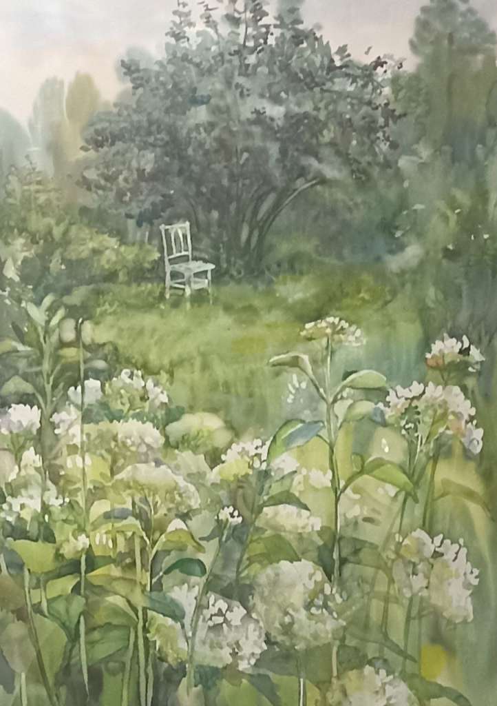 Перед женщиной, перепачканной красками, в клетчатой рубашке с закатанными рукавами, натянут на раму белый лист. Щурясь, она старательно обмакивает кисточку в буйное разноцветье. Её босые ноги утопают в росистом бархате. А из-под кисти появляется радостное «Цветение»!