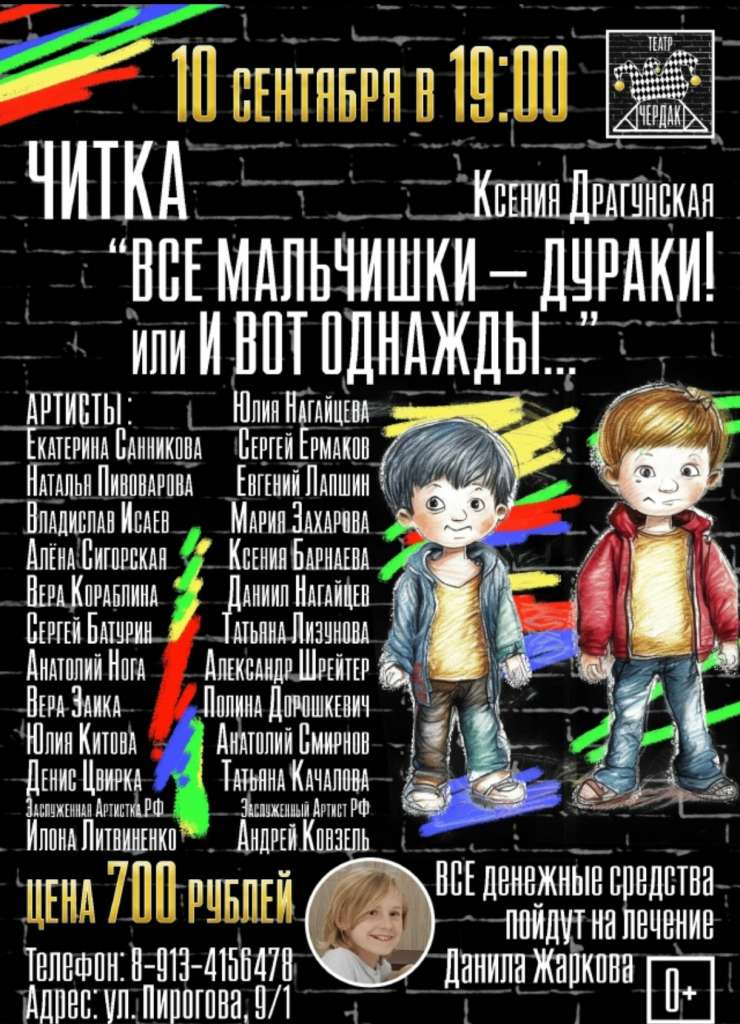Встречаемся на «Чердаке» https://vk.com/teatr.cherdak! А кто вдруг не сможет прийти – просто присоединяйтесь к сбору на укол для Дани Жаркова https://vk.com/danil_zhivi!