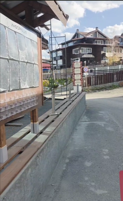 Ограждение, обеспечивающее безопасность гостей Шерегеша, представляет собой бетонную скамью с деревянным настилом, чтобы туристам было удобнее ожидать такси. Там же для удобства гостей установлен информационный стенд для размещения актуальной информации. Препятствий в пользовании земельным участком нет. Для сравнения можно посмотреть на противоположную сторону этого моста – за такое состояние ограждения никого не наказывают.