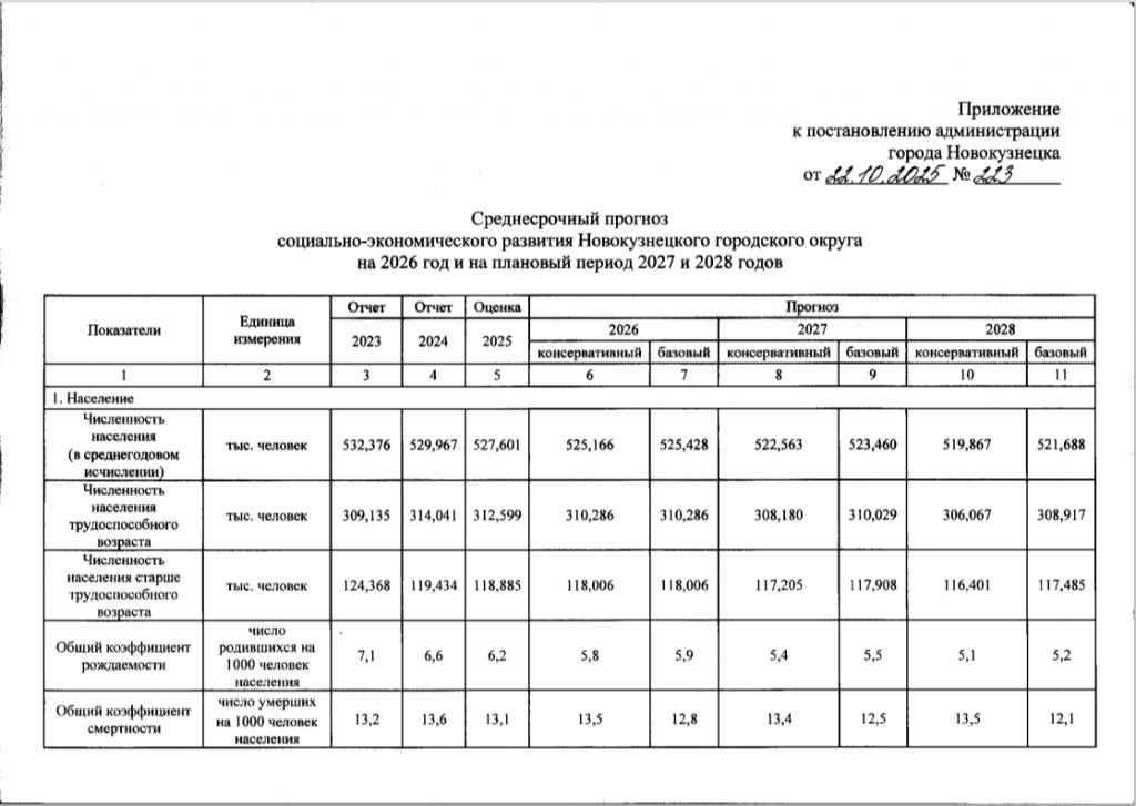 В Новокузнецке утверждён среднесрочный прогноз социально-экономического развития города на 2026 год и на плановый период 2027 и 2028 годов.