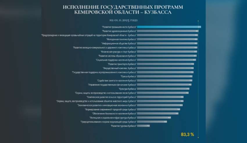 По данным Министерства финансов Кузбасса, на 1 ноября 2025 года на реализацию 25 государственных программ региона было направлено 195,95 млрд рублей.