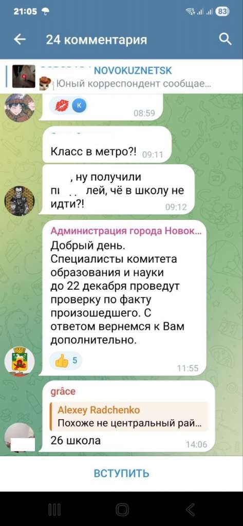 Минуло 9 месяцев и Минпросвещения объявило об утверждении инструкций по действиям педагогов в конфликтных ситуациях. Правда, проекты этих инструкций пока не опубликованы. Зато конфликтные ситуации, после которых медикам приходится оказывать неотложную помощь есть. О состоянии здоровья новокузнецкого подростка, которого «вырубил» его товарищ по школе, пока ничего не известно. Специалисты Комитета образования и науки обещают дать ответ после 22 декабря.