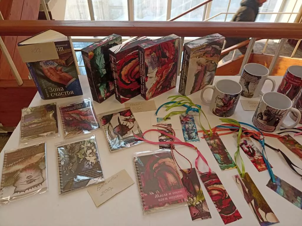 А Константин Шабалдин – известный новокузнецкий писатель-фантаст и телеоператор – придумал к каждой иллюстрации забавную историю. Кроме того, на выставке, оформленной в виде старых стенгазет (ещё одна диковинка для нынешнего поколения!) с красноречивыми названиями «Кимберлитовая правда» и «Селенитовый вестник» можно обнаружить отрывки из произведений Константина «Кимберлитовая кикимора», «Семь золотых и один из бронзы» и других – поищите сами!