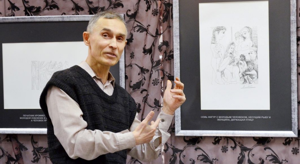 Лучшего провожатого по выставке графики “Искушение” величайшего художника ХХ века Пабло Пикассо, чем художник, искусствовед и философ Руслан (Евгений) Высоцкий, едва ли можно найти.