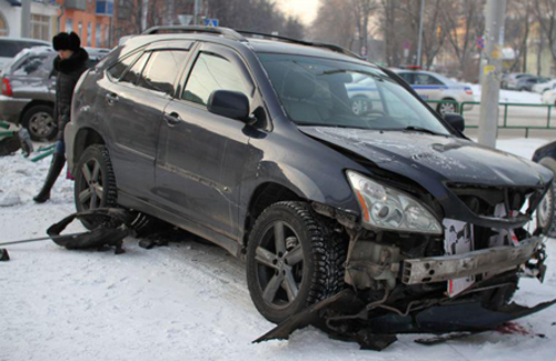 На перекрестке Строителей – Пирогова столкнулись кроссовер Лексус и легковой Ниссан. В результате столкновения обе машины получили значительные повреждения. Пробив дорожное ограждение, Лексус вылетел на тротуар. Молодая девушка с сотрясением головного мозга на скорой помощи доставлена в ГКБ №29.