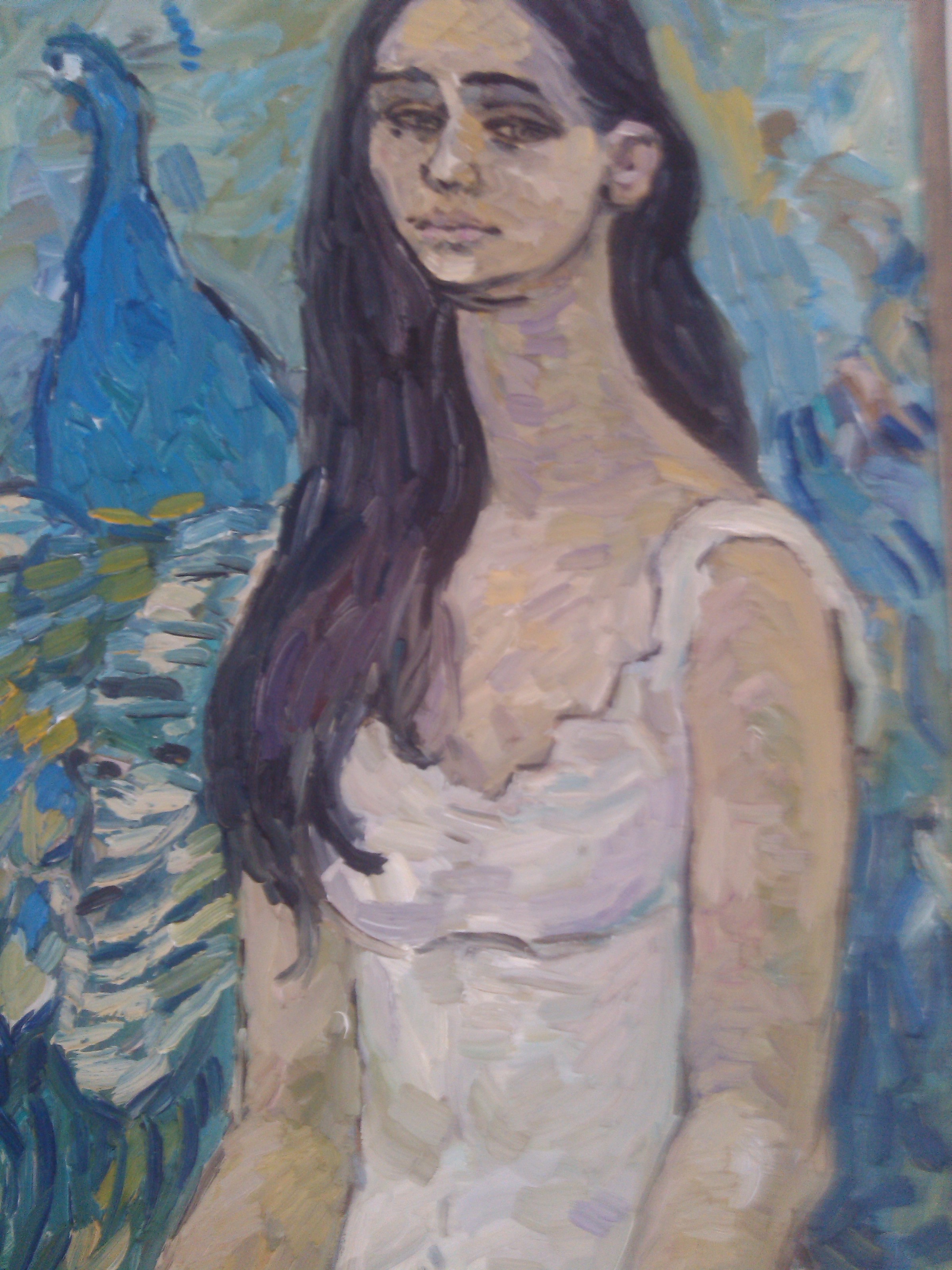 Мне понравилось, тронуло, откликнулось и раскрутилось! И «красный» «Неоконченный портрет», и «зелёные» «Открытые ворота» уже знакомой Екатерины Чепис… И напряжённая – воистину драматичная, точно гомеровская «Илиада»! – графика Ильи Ключникова… И тревожные натюрморты – «Сиреневый» и «Жёлтый» Елены Зерфус и её же самозабвенный «Виолончелист»… И чистое «Молчание» Славы Хмель, переливающийся из цвета в цвет, узорчатый «Серёжин зоопарк», витражи с полевыми цветами… И странные глаза, будто закрытые изнутри радужки некоей печатью отсутствия здесь и сейчас, на картинах Ирины Луцишиной… И чудные самолёты Ильи Храброго…