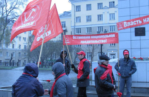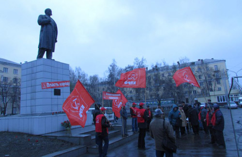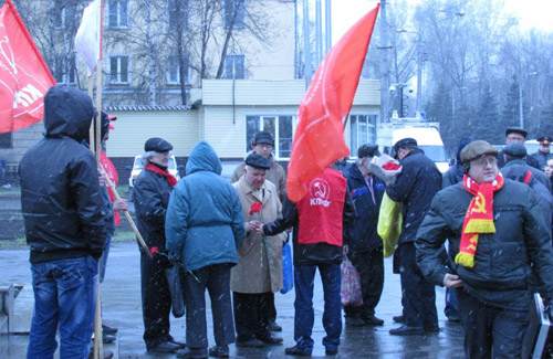 Не смотря на радикально испортившуюся погоду, коммунисты Новокузнецка вышли на пикет, посвященный 144-ой годовщине со дня рождения В.И Ленина.