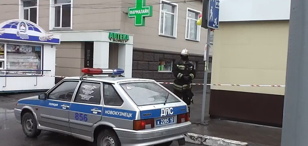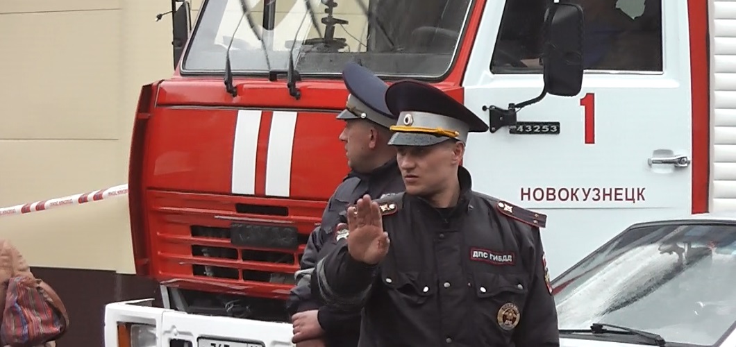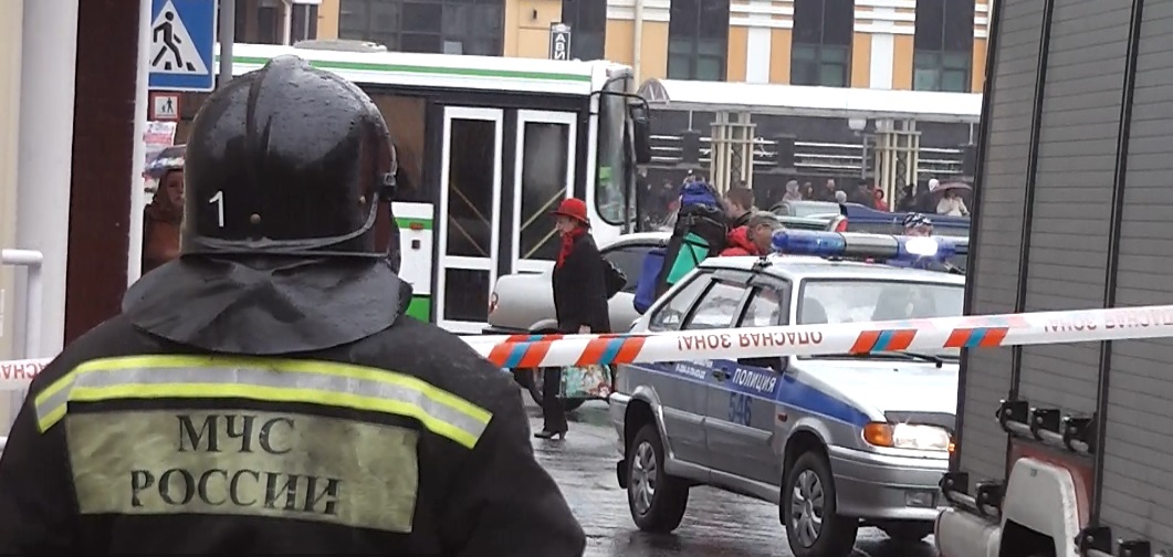 Три легковые машины ГИБДД и пожарная машина МЧС блокировали остановку и расположенные по её бокам киоски. Все оперативные автомобили стоят с включенными проблесковыми маячками. Натянута специальная лента, заграждающая подходы к лавочкам на остановке. На одной из них, покрашенной в зелёный цвет, лежит красная сумка. На противоположной стороне дороги стоит машина скорой помощи.