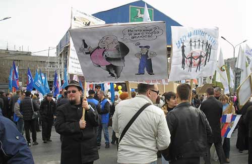 Пресс-служба Кемеровской территориальной профорганизации ГМПР, в анонсе о предстоящем проведении первомайской акции профсоюзов, озвучило название митинга: «Достойный труд – справедливая зарплата!». Выступающие дежурно клеймили буржуев и требовали соблюдения прав трудящихся. Народ вяло аплодировал.