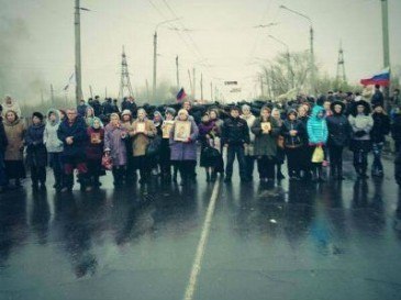 Путь в Славянск им преграждают местные жители, выстроившиеся «живой цепью».