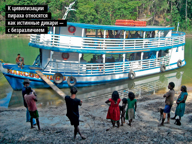 Звонок другу Некоторые герои наших статей настолько реальные люди, что им можно позвонить и задать несколько вопросов. Вот, например, мы позвонили Дэниелу Эверетту.Если пираха не спят, неужели они не устают? Они спят, но не так много, как мы к тому привыкли. Им достаточно поспать один-два часа в день, когда приспичит. Иногда они спят подолгу, а в какой-то день могут и вовсе не ложиться. У них нет никакого режима дня, и регулярный восьмичасовой сон для них не имеет никакого смысла. Какова средняя продолжительность жизни? Похоже, что 40–50 лет. Эта народность вымирает или растет? Их число растет, сейчас популяция насчитывает 700 человек. Что воспринято ими из предметов цивилизации? Мачете, алюминиевая посуда, платья, нитки, спички, рыболовные снасти, спортивные трусы, топоры и несколько других приспособлений. В целом – крайне мало, если сравнивать с другими племенами, их соседями по Амазонии. Есть ли у них понятие собственности? Возможно ли представить, что пираха украл или убил? Бывают ли конфликты? Их понятие собственности очень ограничено. Лук со стрелами для мужчины и платья для женщины являются сугубо личными предметами, хотя они могут их обменять или одолжить кому-то. Большинство остальных вещей — общие. Они часто берут друг у друга то, что понадобилось. По их мнению, если человек не пользуется предметом, то он ему и не нужен. Однако, если ты огорчен утратой вещи, тебе ее вернут. В любом случае нет ни насилия, ни тяжелых переживаний из-за материальных вопросов. Я могу приехать и остаться с ними жить? Если они дадут свое согласие, то конечно.