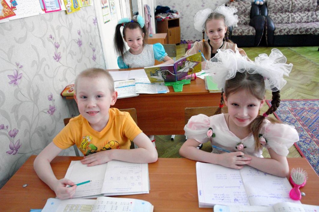 Когда мы приехали в детский дом № 5, ребятишки-второклассники как раз делали домашнее задание.