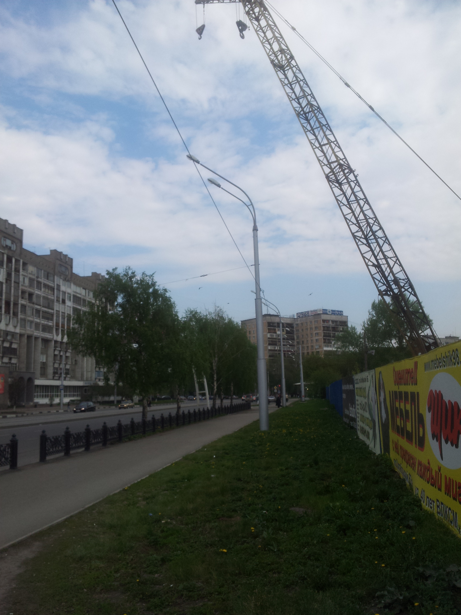 Строительный кран завис над тротуаром